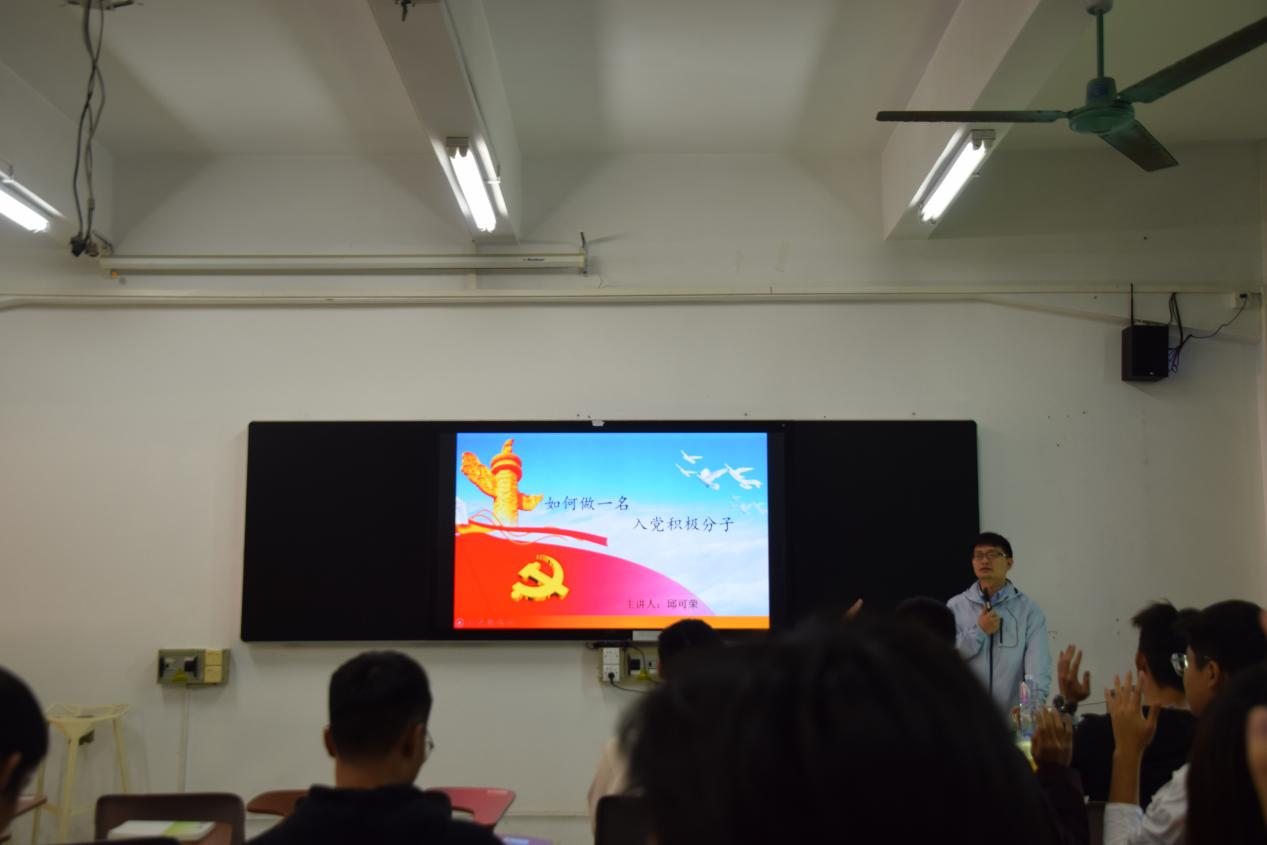 邱老师以“何为正确的入党动机?”这一问题与大家互动,了解入党积极分子们的入党动机。随后,他结合大家的入党动机,分别将其总结为功利型入党动机、从众型入党动机、被动型入党动机和荣誉型入党动机。他通过举例分析四种常见入党动机的意义,引导大家要树立正确的入党动机,践行全心全意为人民服务的宗旨,不断锤炼党性修养,以实际行动争取早日入党。此外,邱老师分享了他大学四年的入党经历,告诫入党积极分子们入党是一个严谨且严肃的过程,信仰一旦坚定,就要一直坚持下去。他还分享了他在广州新华公司(东莞校区)的抗疫经历,通过系列图片为大家展现了一名党员应有的担当与使命,他鼓励大家在大学学习生活中,应当要综合发展,不断提高自己的政治思想水平,争取在思想、学习、工作和生活中积极地发挥模范带头作用。