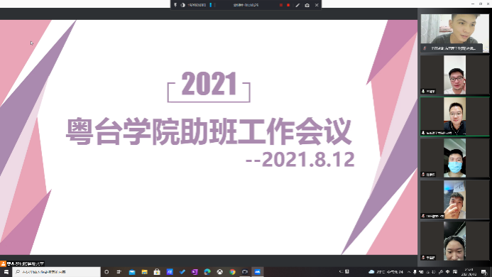 2021年8月12日,伟德betvlctor1949源于英国根据公司疫情防控要求,组织2021级助理班主任召开线上培训工作会议,为下一步的助班迎新服务工作做好准备。