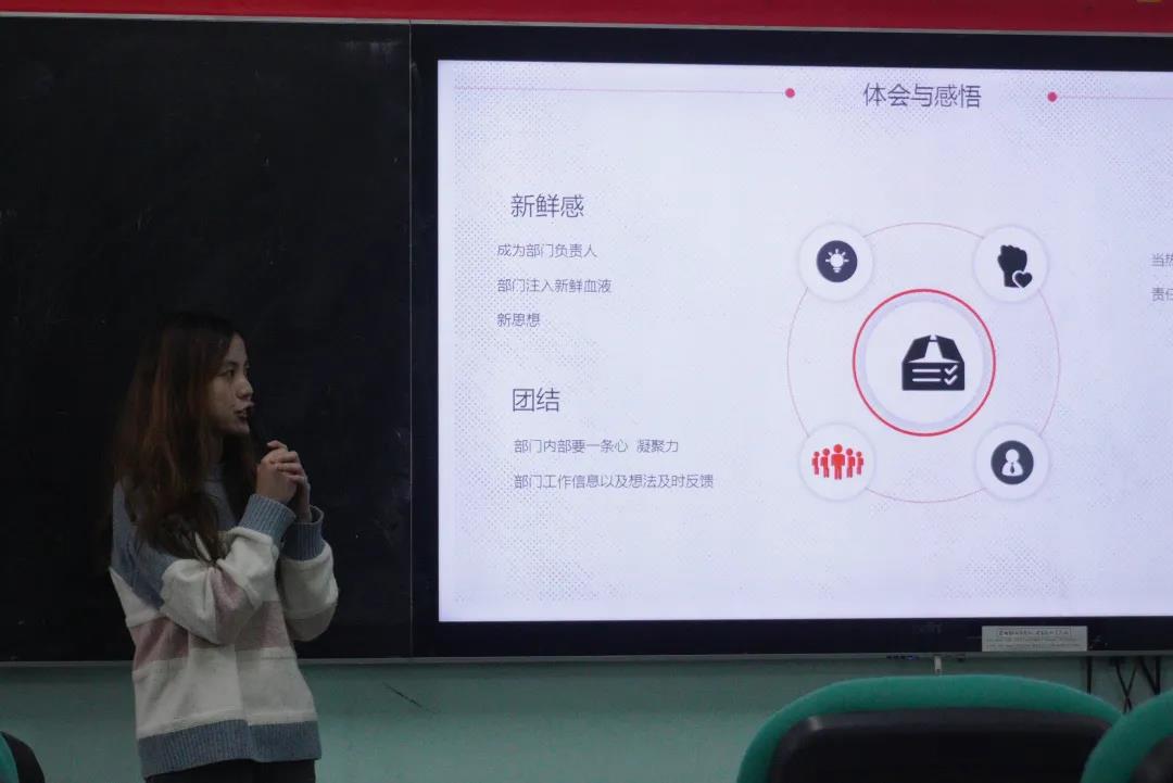 会上,团委员工会各部门负责人、员工党建办公室负责人、公司新闻媒体中心负责人和主席团成员分别对本学期的工作进行汇报,着重对过去一个学期的工作进行了总结反思,并对未来工作提前做好计划。随后,潘老师为公司干事培训中的获奖小组代表进行颁奖。最后,陈老师作了总结,他肯定了团委员工会等的相关员工干部在公司工作中的付出,并表示此次述职不仅是对过去工作的反思,更是为了更好地完成后面的工作。