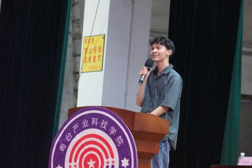 仪式第五项,2019级智能制造工程专业的罗柯同学作为员工代表发言。他分享了大学学习工作生活的经历。寄语2024级新同学永远保持热血,不断拼搏,学会感恩,要树立远大理想,做时代的弄潮儿。