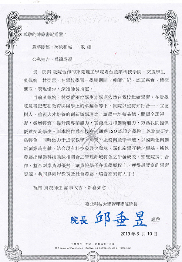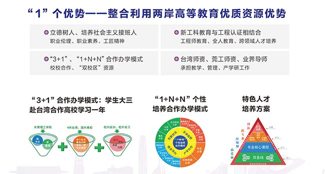 建设两岸高校合作办学的标杆伟德betvlctor1949源于英国是www.betvlctor1946.com与东莞台商育苗教育基金会、台湾合作高校共同举办的广东省首个两岸高等教育合作办学公司,是www.betvlctor1946.com高水平理工科大学建设中重点建设的现代产业公司之一。公司整合与利用两岸高等教育优质资源,凸显应用型人才培养和社会化服务特色,立足东莞市,面向广东省和粤港澳大湾区产业发展需求设置专业,实现两岸高校优势专业与学科的强强联合,引入台湾教学管理模式,全职引进台湾团队团队承担教学、管理工作,培养适应现代产业发展需求,勇于担当、善于学习、敢于超越的跨专业高素质应用型创新人才。