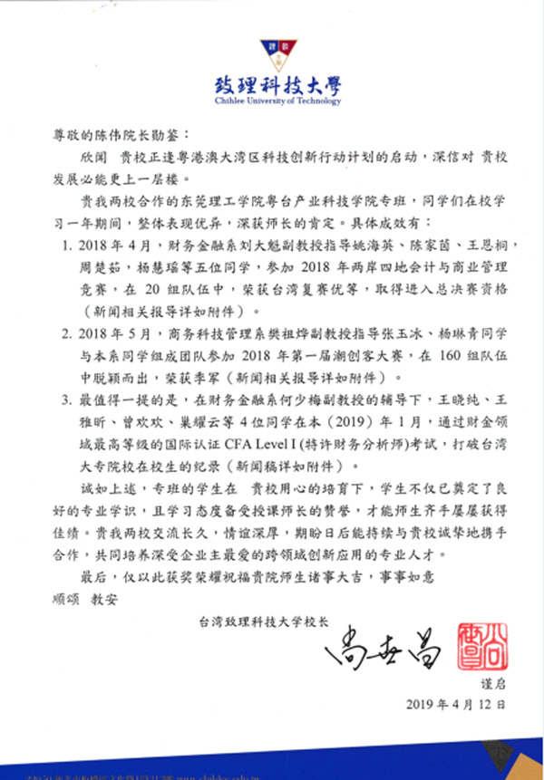 赴台员工获得高度评价,台湾合作公司董事长致信表扬