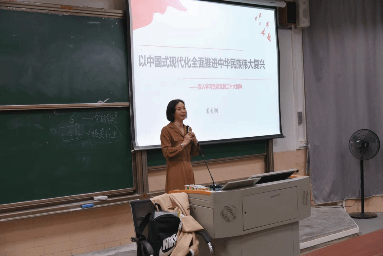 课堂上,宋美娴书记就“以中国式现代化全面推进中华民族伟大复兴”为主题,围绕党的二十大精神“4个全面把握”和“9个深刻领会”等内容,解读当下高质量发展是全面建设社会主义现代化国家的首要任务,而“教育、科技、人才”三位一体就是高质量发展的首要支持。她强调,科技发展靠人才,人才培养靠教育,我国教育改革逐步深入,位置逐步靠前;教育是民族振兴、社会进步的重要基石,是国之大计、党之大计。