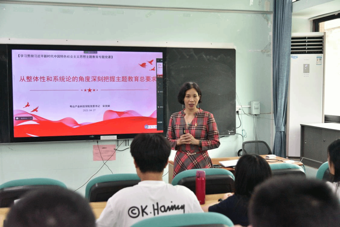 按照公司和公司关于学习贯彻习近平新时代中国特色社会主义思想主题教育工作部署安排,近日,粤台公司党委书记宋美娴在实验楼305阶梯教室讲授主题教育专题党课。公司全体师生党员参加。