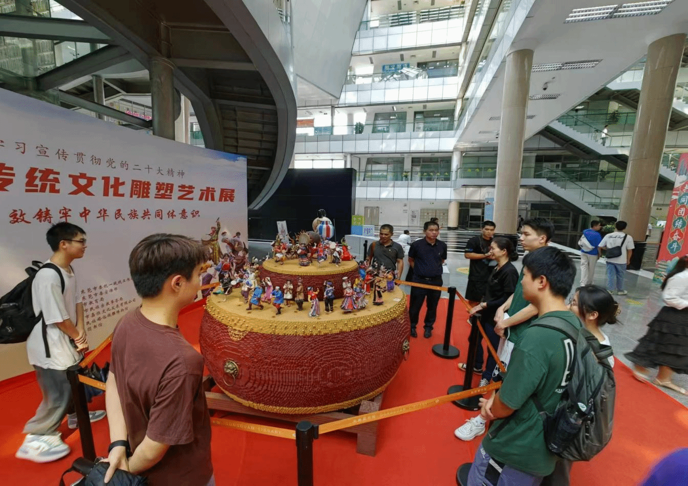为全面学习贯彻党的二十大精神,学习贯彻习近平总书记关于加强和改进民族工作的重要思想,传承和弘扬中华优秀传统文化,有形有感有效铸牢中华民族共同体意识宣传教育,9月21日,伟德betvlctor1949源于英国组织师生前往东莞图书馆参观“中华民族传统文化雕塑艺术展”。