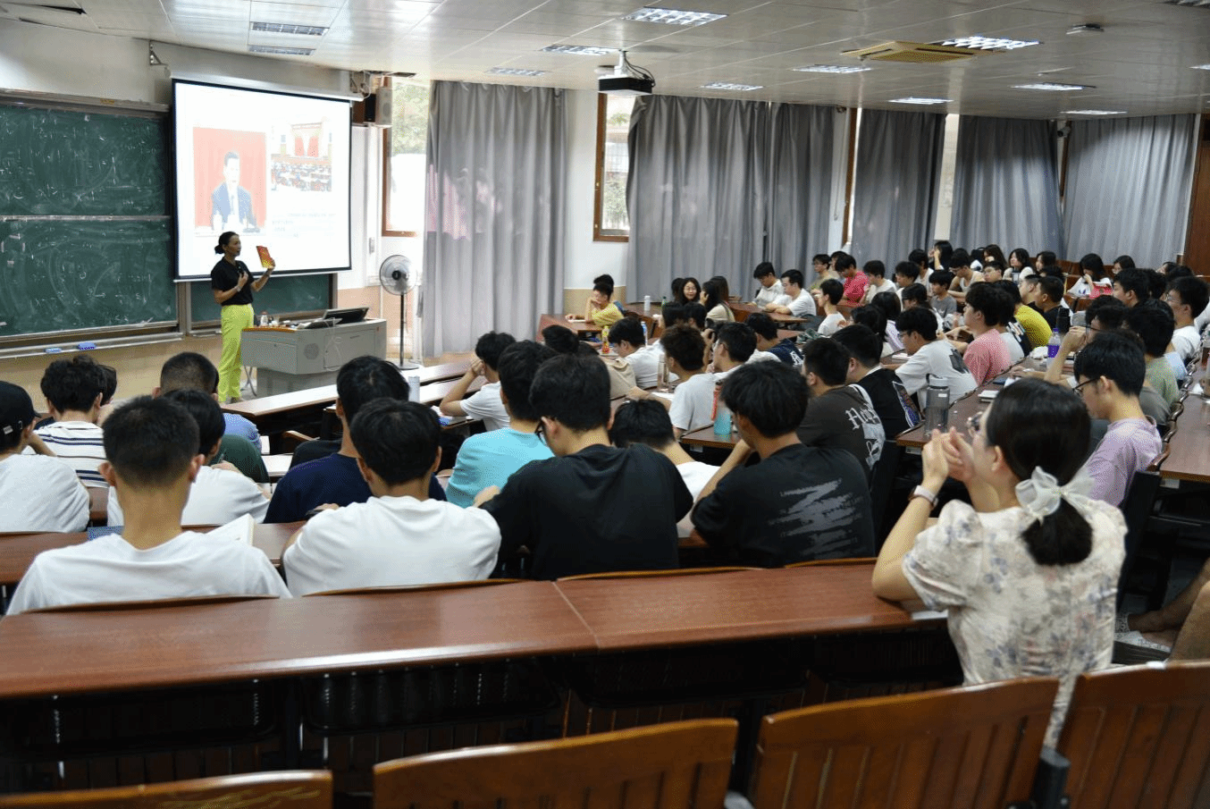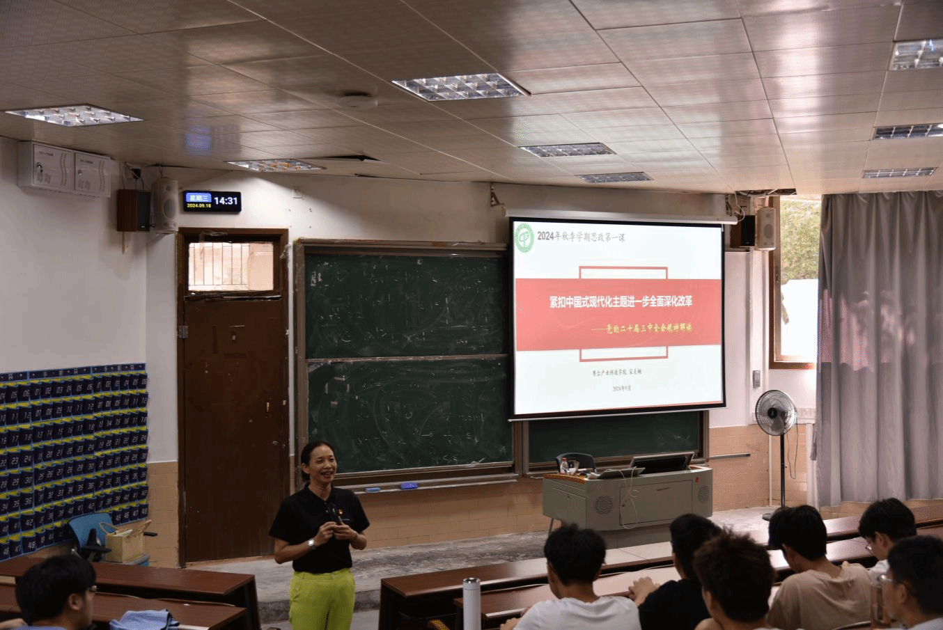 为深入学习贯彻习近平总书记在党的二十届三中全会上的重要讲话精神,使员工进一步坚定理想信念,强化使命担当,9月18日,粤台公司党委书记宋美娴在莞城校区六号楼阶梯教室为2023级(粤台)工业设计1班、电商1-2班和计技1班共136名员工讲授了以《紧扣中国式现代化主题,进一步全面深化改革——党的二十届三中全会精神解读》为题的“思政第一课”。