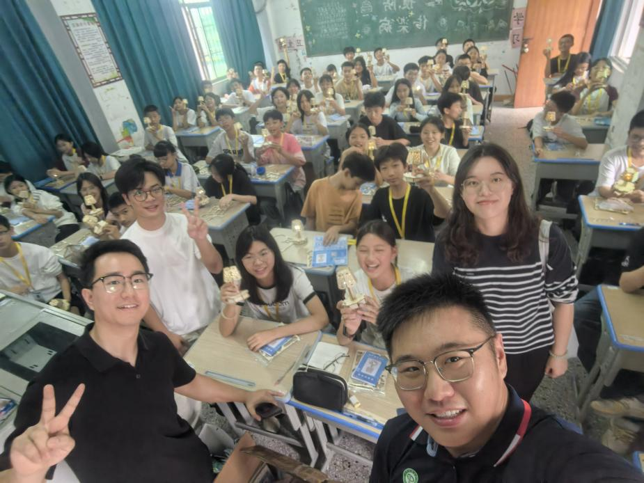 随后,宋美娴书记带领教师党员付中鑫、张星星与员工一起到垾塘下寨中学进行科创教育并送教具活动,实现跨越城‬市界限,传递‬科学火‬种,科普和科技走进校园。课堂上为同学‬们带来《声实音‬验室——声电控‬路原理》科普课‬堂,并指导员工亲‬手制作声‬控小台灯,这不仅是小‬制作,更是“百千‬万工程”送进乡村科‬学的大礼包!用科技点‬亮乡村‬课堂,用实践‬点燃科‬学梦想!