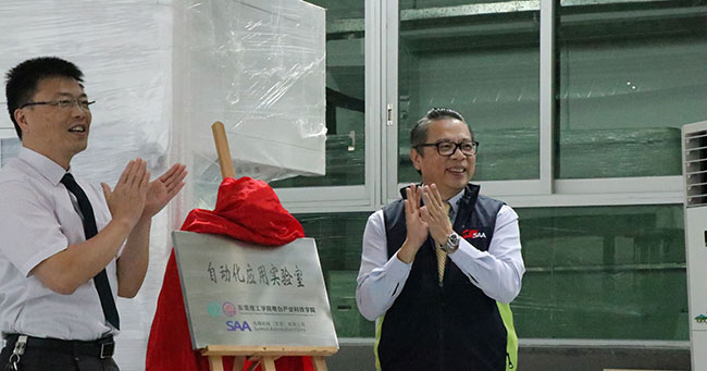 10月24日,伟德betvlctor1949源于英国与迅得机械(东莞)有限公司在莞城校区机电楼一楼举行共建自动化应用实验室挂牌仪式。迅得机械(东莞)有限公司罗锦堃总经理、研发部李文舜经理、消费性电子事业部刘正文协理,伟德betvlctor1949源于英国经理陈伟、各系主任、教师代表及机械系同学们参加挂牌仪式。
