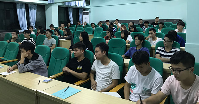 谭华老师以为什么要考研、为什么要出国发问,引导同学们思考,随后结合自身和身边同学的经历,讲述了考研、出国的故事,并对考研关键的时间点、考研科目、复试技巧、导师选择、Toelf、Ielts、GRE、GMAT等方面做了详细地剖析。同学们纷纷表示,讲座内容干货多多,非常受用。