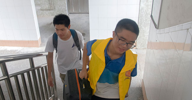 宿舍的接待也是井然有序的,志愿者负责将每一名到来的新生及家长送到宿舍,安置好之后离开,并会留下志愿者的电话号码,让新生有需要的时候及时联系志愿者。