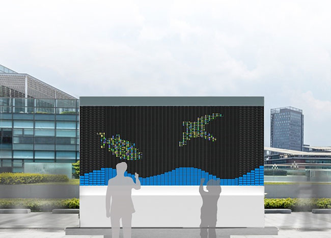 该作品“废电池回收涂鸦墙”( Battery-graffiti)是一个干电池回收装置与共享的装置,将回收电池嵌入墙的结构体,经由干电池串连与并联,透过升压后输出,可提供随身移动设备数码产品充电。电池墙的结构体是为了更好地融入公共空间,使用者可以在非服务型的公共场合为自己的行动电话进行紧急充电。并进一步启发和宣导市民回收电池的重要,该设计不仅通过共享榨干了“废旧”电池最后的能量,也加快了电池的回收与周转,为下一步无害化处理做了前置工作。透过电池回收与共享发想出了垃圾这一新概念,同时也是针对环保最好的宣导。