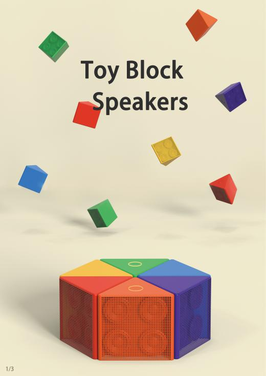 《TOY BLOCK SPEAKERS》由马居正老师指导完成。该组同学表示他们想要通过这款积木音箱让使用者在听音乐的同时还可以益智娱乐。不仅可以通过音乐去放松自我,还可以随意组合这六块积木,沉浸在童趣之中。