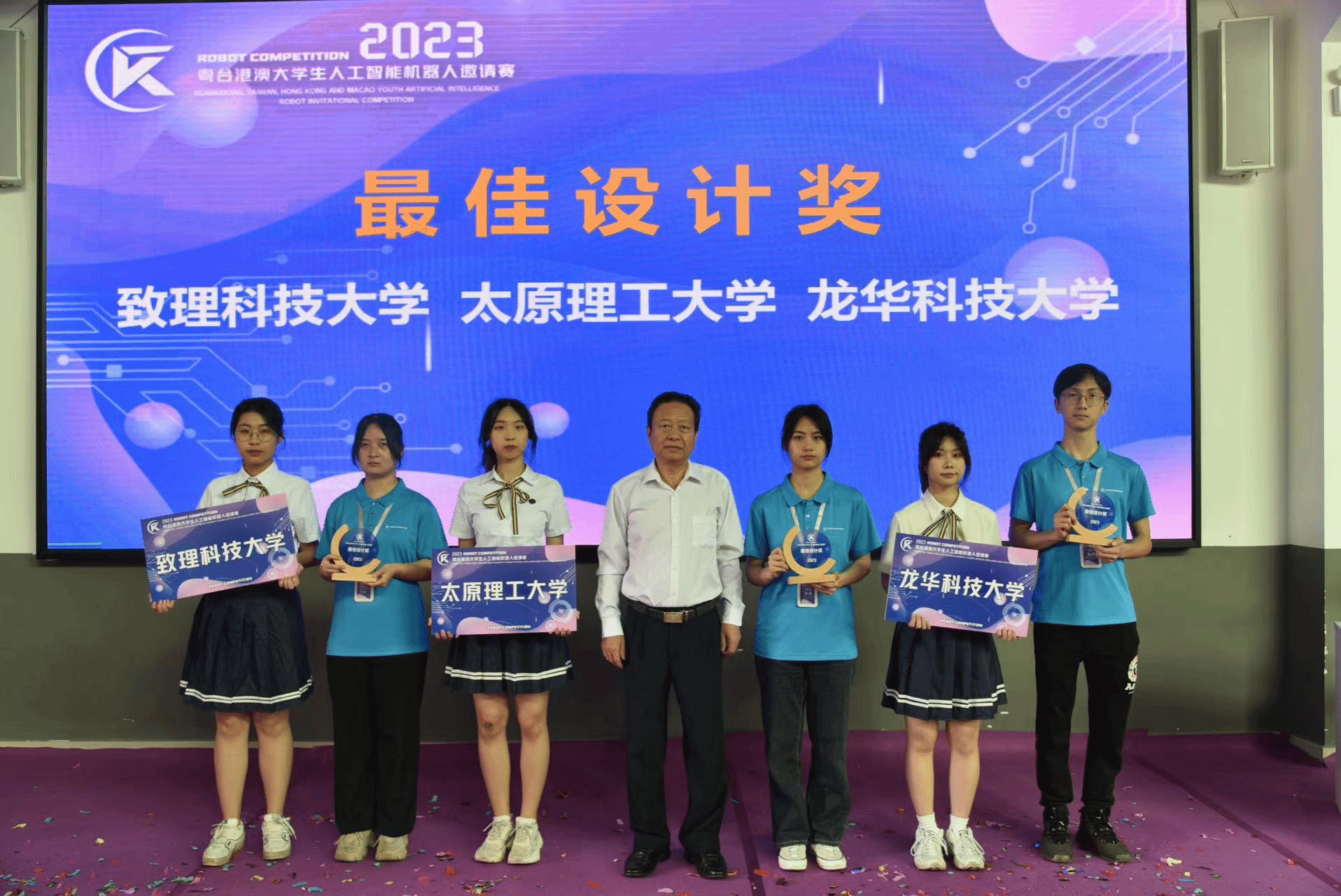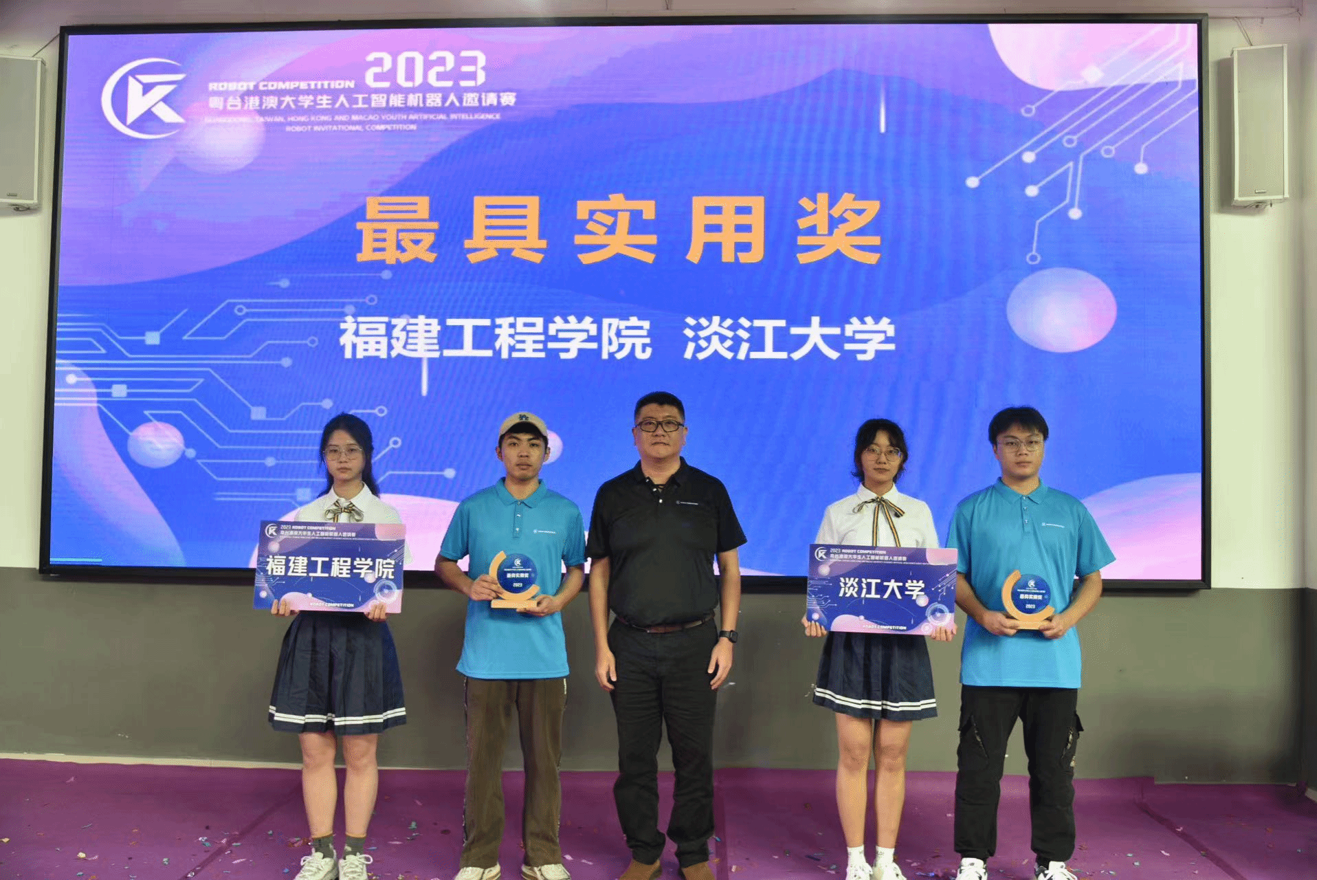 经裁判组评定,致理科技大学、太原理工大学、龙华科技大学获最佳设计奖;虎尾科技大学、铭传大学、圣保禄公司获最佳团队奖;中正大学、www.betvlctor1946.com获最佳创意奖;福建工程公司、淡江大学获最具实用奖;铭传大学、龙华科技大学、福建工程公司获最佳组织单位。