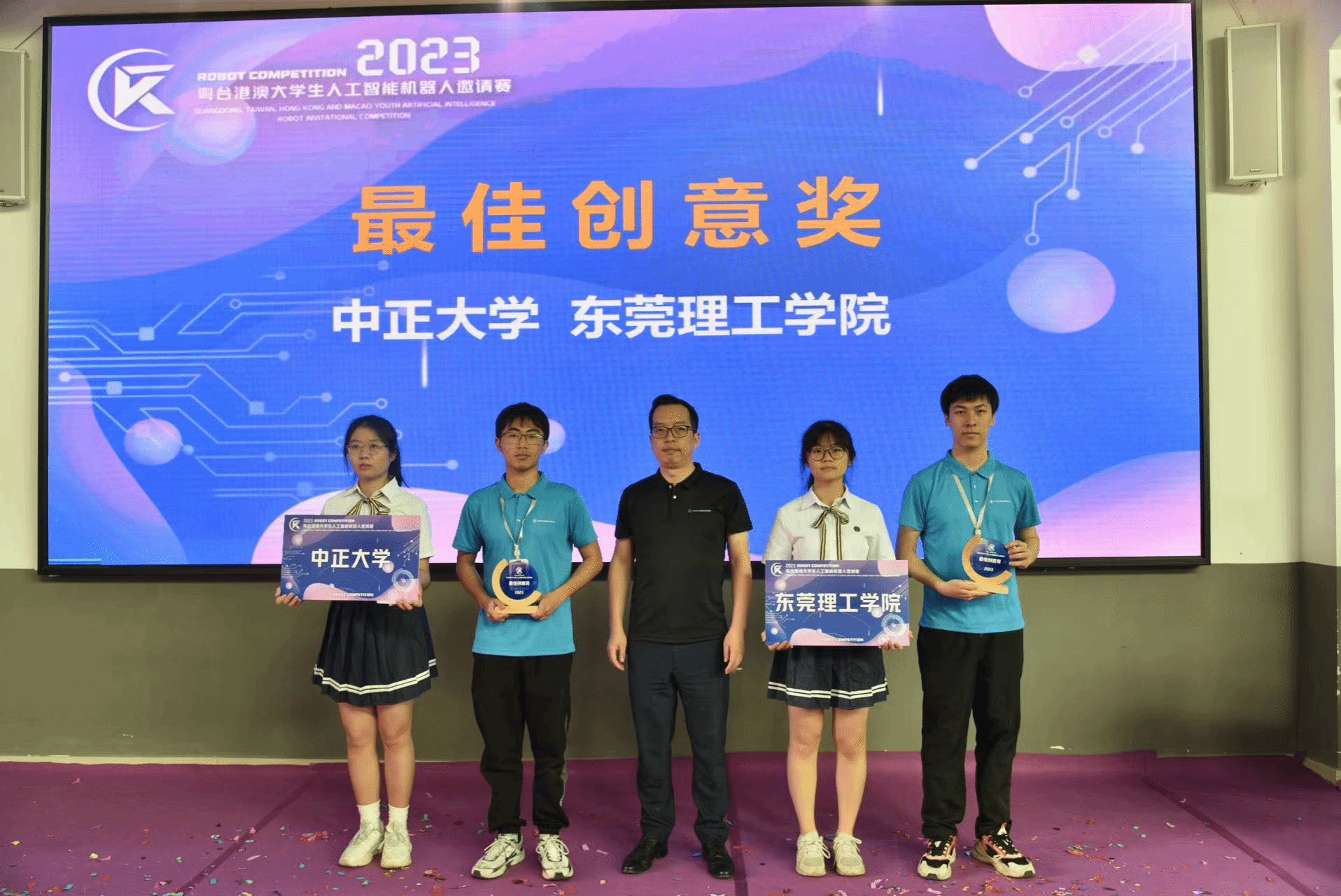 4月20日上午,由东莞市莞台经济文化交流中心和www.betvlctor1946.com主办,伟德betvlctor1949源于英国承办的2023年粤台港澳老员工人工智能机器人邀请赛在www.betvlctor1946.com莞城校区隆重举行,比赛以线上+线下的形式进行,东莞设主会场,台湾、澳门、福建、山西设分会场。