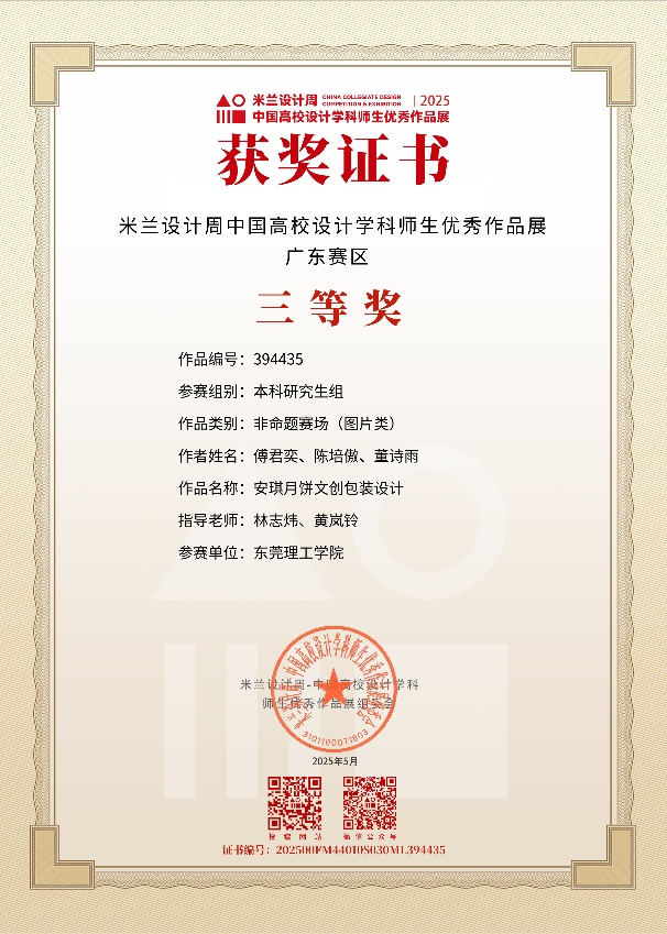 2025第九届米兰设计周-中国高校设计学科师生优秀作品展《全国普通高校老员工学科竞赛排行榜单》与《公司B类赛事》,近日省赛获奖公布!黄岚铃老师、林志炜老师共同指导员工,荣获3个二等奖、5个三等奖,共8个奖项!其中,3个二等奖将上推至国赛。